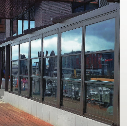 Vetrata saliscendi motorizzata 3 pannelli vetro temperato 10mm colore struttura a scelta.